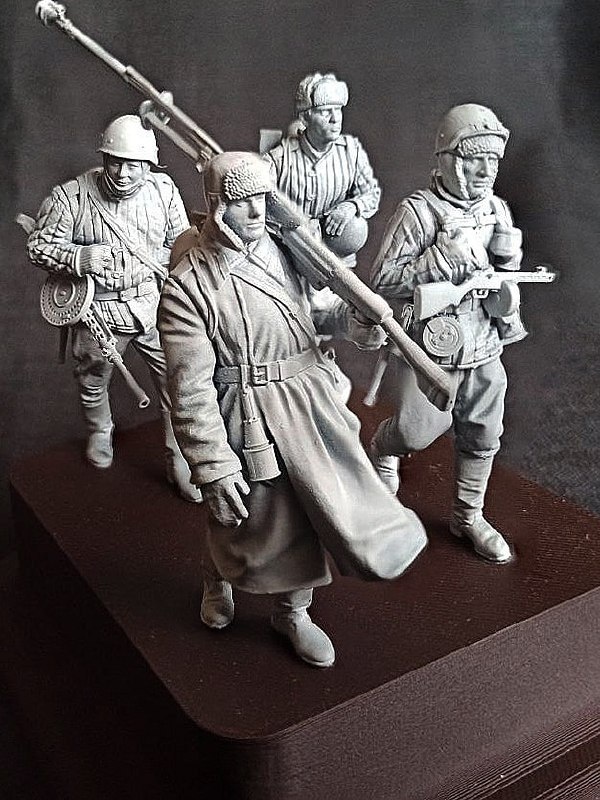 Красноярская ENGINEERING MINIATURES выпустила на 3D-принтере набор из четырех фигур советских пехотинцев в зимнем обмундировании в масштабе 1/35.