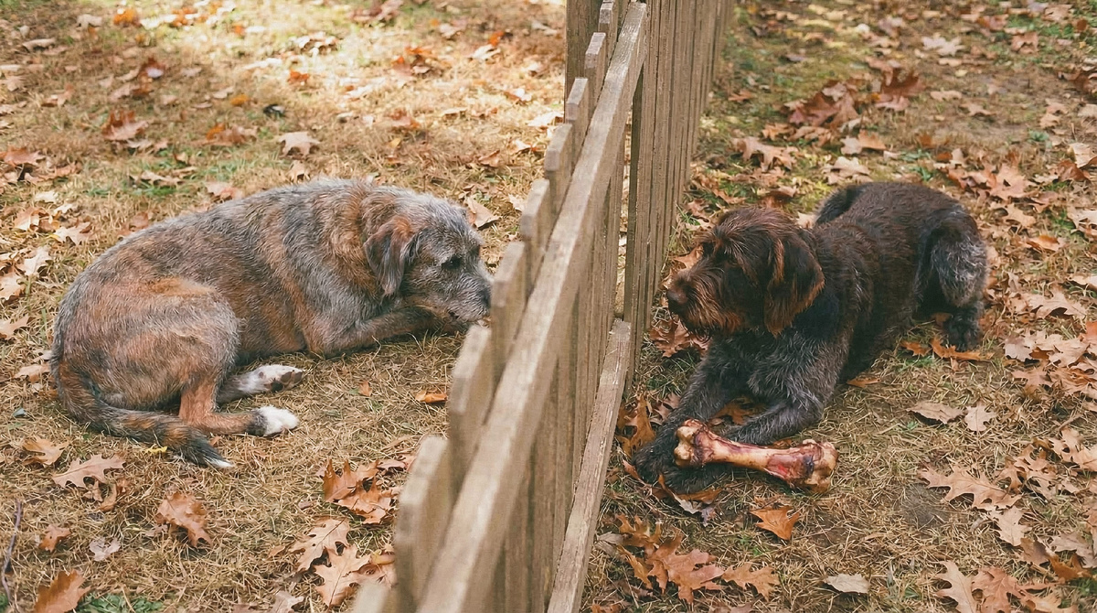 Людмила Петровна поставила миску на землю и присела рядом с Хвостом. Колени заныли от сырости, но она не обратила внимания, потому что смотрела на щель в заборе. Знакомая картина: Каштан, пёс соседки, принюхивался с той стороны. Его тёмно-коричневая морда с лохматой бородой появлялась здесь каждый день вот уже три года, и Людмила давно перестала этому удивляться.