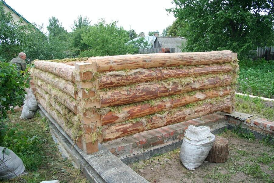 Сруб из бревна собирается довольно просто,если не учитывать большой вес бревна. Срубы небольших размеров например 3х5м. можно собрать вручную без привлечения техники усилиями 2х-3х человек. Начинать сборку нужно с укладки гидроизоляции. Это необходимо для того чтобы влага от фундамента не переходила от бетона к дереву.В качестве изоляционного материала используют как правило либо рубероид в2 слоя, либо бикрост укладывается в один слой клейкой стороной к бетону. Определяем маркировку на срубе как правило первой цифрой обозначается стена второй обозначается ряд, уточняйте у производителя могут быть различные варианты. Первый ряд обязательно обрабатывается невымываемым антисептиком. Сруб не обязательно крепить к фундаменту. Укладываем на гидроизоляцию утеплитель(джут,лен,мох,паклю). Выкладываем первый ряд, вымеряем диагонали. Собираем сруб укладывая межвенцовый утеплитель на каждый ряд оставляя свисать по краям для дальнейшей конопатки контролируем уровень углов,в срубе как правило урове