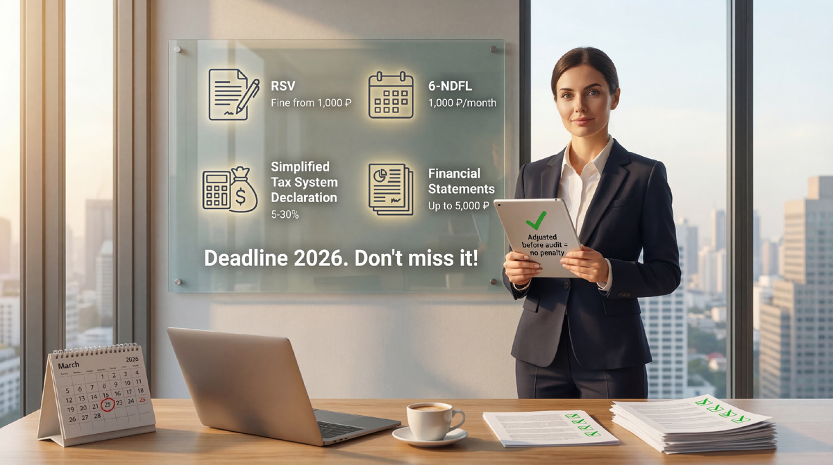 ☐ РСВ, 6-НДФЛ, декларация по УСН - за просрочку минимум 1000 рублей