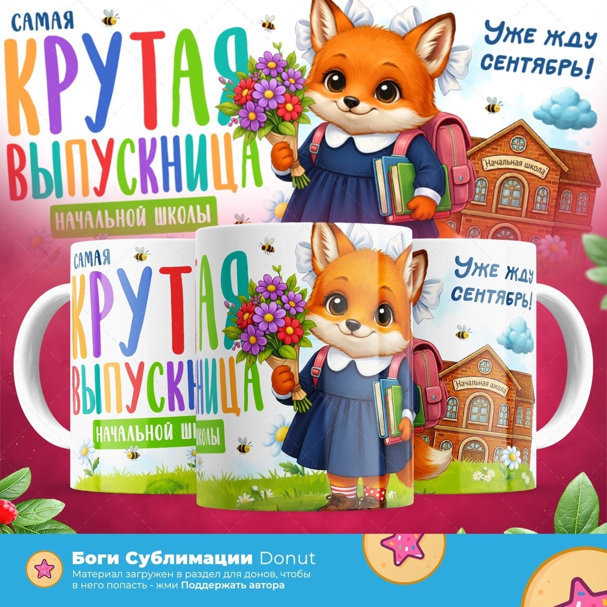 Макет на кружку крутая выпускница начальной школы с лисичкой. Чтобы скачать бесплатно, поддержите нас через VK Donut