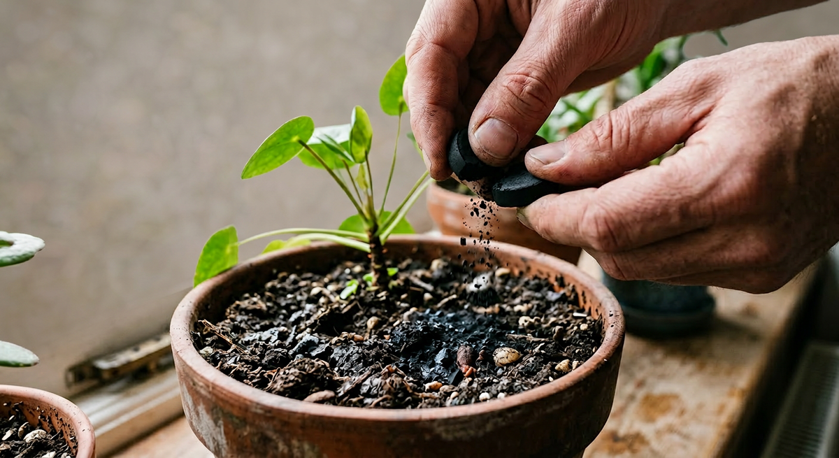 Рассказываю, как перестал тратить тысячи на «волшебные» эликсиры из садовых центров и перешел на обычный аптечный уголь. Личный опыт реанимации подгнивших корней, борьба с плесенью и один лайфхак с пересадкой, который сэкономит вам кучу нервов. Плюс чеклист по применению в конце. Добрый день! Я на прошлой неделе чуть не отправил на помойку свою любимую драцену, которую растил года три. Просто в какой-то момент психанул: полил лишнего, сверху бахнул какого-то «супер-стимулятора» из яркой бутылочки за 800 рублей, и через два дня пошел сильный запах болота. Я раньше скупал всё: «антистрессы», «укоренители», немецкие подкормки. А потом зашел к соседке — у нее джунгли в однушке, при этом она пенсионерка и явно не тратит ползарплаты на фунгициды. Смотрю, а у нее в горшках какие-то черные крошки. Оказалось — обычный активированный уголь. Тот самый, из аптеки. Я сначала скептично хмыкнул, мол, ну-ну, народная медицина. Но когда моя драцена начала опускать листья, терять было нечего. Вытряхнул
