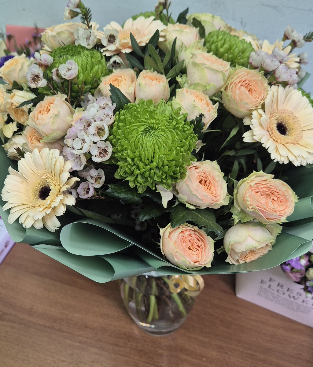 Цены и цветы так и остались с 8 марта, завоза нового не было. От 8 000 рублей букет и корзина за 13 000