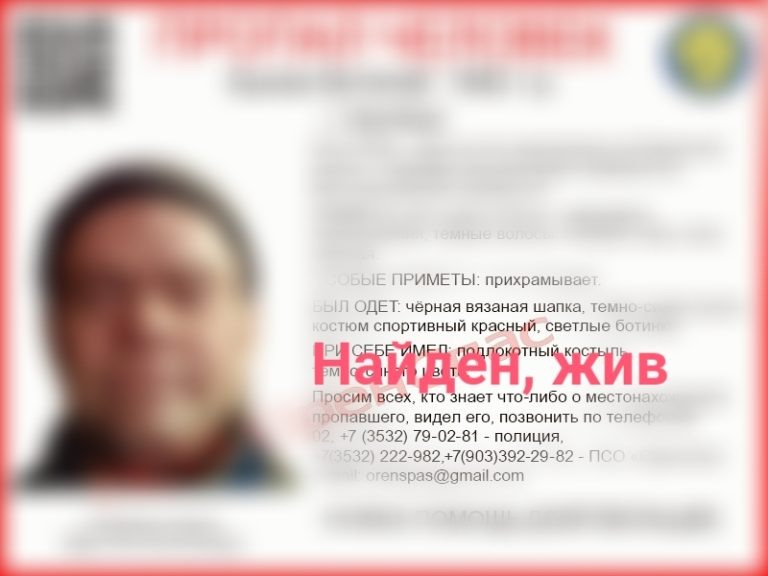 В областном центре сотрудники полиции и волонтёры ПСО «ОренСпас» устанавливают местонахождение Виталия Быкова. Мужчина 1982 года рождения днем 6 марта 2026 году ушёл из тубдиспансера на нежинском шоссе и пропал. . До настоящего времени его местонахождение неизвестно. Приметы: рост около 155 см, худощавого телосложения, тёмные волосы, голубые глаза, кожа смуглая. Особые приметы: прихрамывает. Был одет: чёрная вязаная шапка, темно-синяя куртка, костюм спортивный красный, светлые ботинки. При себе имеет: подлокотный костыль тёмно-синего цвета. Мужчина может вести асоциальный образ жизни, отметили в полиции. Всех, кто что-либо знает о местонахождении пропавшего или видел его, просят позвонить по телефонам: 02, +7 (3532) 79-02-81 — полиция, +7(3532) 222-982,+7(903)392-29-82 — ПСО «ОренСпас».