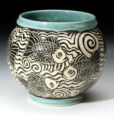 • Слой за слоем: Игра в прятки. Вначале – подготовка. На "кожетвёрдое" или уже обожженное изделие наносится ангоб – цветная жидкая глина. Это может быть один слой, или несколько, контрастирующих друг с другом, как тайные записи, наслоения эпох. Каждый слой – тончайший, около миллиметра, и каждый терпеливо ждёт высыхания предыдущего.