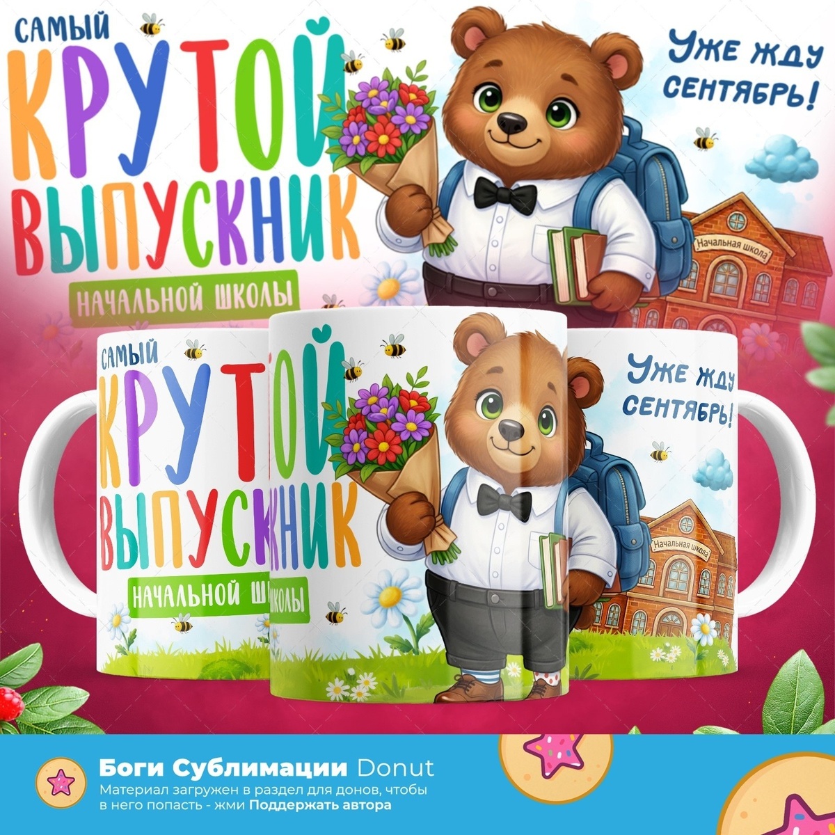 Макет на кружку самый крутой выпускник начальной школы. Чтобы скачать бесплатно, поддержите нас через VK Donut
