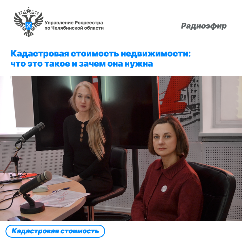 Управлением Росреестра по Челябинской области принято участие в записи программы «Новый день» на радиостанции «Радио Россия – Южный Урал». Темой эфира стала кадастровая стоимость недвижимости – один из наиболее актуальных вопросов для правообладателей объектов недвижимости. Приглашенные спикеры: заместитель начальника отдела кадастровой оценки недвижимости, землеустройства и мониторинга земель Управления Росреестра по Челябинской области Галина Уразбахтина и директор областного государственного бюджетного учреждения «Государственная кадастровая оценка по Челябинской области» Елена Нескоблева. Южноуральцам разъяснили, что влияет на кадастровую стоимость, как она определяется и для чего используется. Директор ОГБУ «Государственная кадастровая оценка по Челябинской области» Елена Нескоблева рассказала, что при определении кадастровой стоимости объектов недвижимости используются методы массовой оценки, что предполагает определение кадастровой стоимости для определенной группы объектов нед
