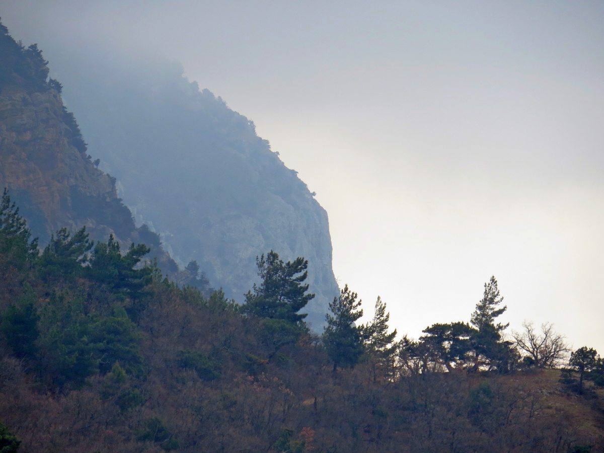 Совсем забыла, что в названии участвует название пляжа Инжир! До него мы не дошли. Довольно сложно идти тропе с размытой грязью так долго. В лучшую погоду мы когда-нибудь дойдём. А пока, устроившись под сосной на отроге горы, разглядывая, как туча опускается всё ниже, мы перекусили и немного отдохнули. Окружающие виды захватывают даже в сумрачную погоду! На обратном пути сделали небольшую попытку заблудиться. Да! КАжется иди себе и иди вдоль обрыва! Но здесь столько пересекающихся троп, бегущих в разные стороны! ЧУть не ушли вниз на очередной пляж. Но скала, служившая нам приметой, спасла нас от лишнего подъема. Теперь остается просто идти и иногда смотреть по сторонам. Не одни мы в такую погодку прогуливаемся здесь! Неожиданно заметили огромный водопад бьющий просто со склона! Снова ручьи на тропе. Снова это неприятный участок! Но ведь, как красиво! Еще немного и мы уже почти в Балаклаве. Весь маршрут получился около 14 км. Начало прогулки - Балаклава - мыс Айя. Часть 1. К пляжу Инжир