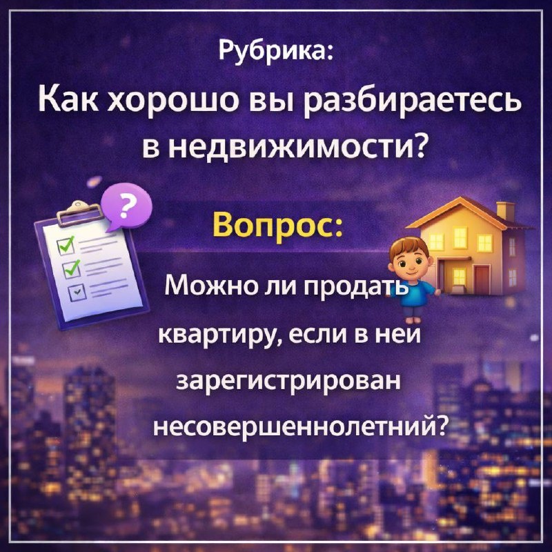 ❤️❤️❤️❤️❤️ Правильный ответ: Да, без ограничений. 🔎 Разбор: • Если ребёнок просто зарегистрирован - продажа возможна • Если ребёнок собственник или имеет долю - нужно разрешение органов опеки ❗️Частая ошибка покупателей - путать прописку и право собственности. Если ребёнок только зарегистрирован (прописан), но не собственник такую квартиру продавать можно без разрешения органов опеки. Но: - ребёнка нужно будет снять с регистрационного учёта - обычно это делается после сделки или одновременно с переездом - если родители не выпишут ребёнка добровольно, новому собственнику иногда приходится выписывать через суд. Поэтому покупатели обычно требуют: обязательство выписать ребёнка или выписку до сделки. 💬 Вывод: Всегда проверяем кто зарегистрирован и кто собственник - это разные вещи с разными последствиями. P.S. и кстати Недавно на сделке столкнулась с интересной ситуацией. В форме 9 была указана пометка «Контроль опеки». ❓Что это означает? В квартире был зарегистрирован ребёнок