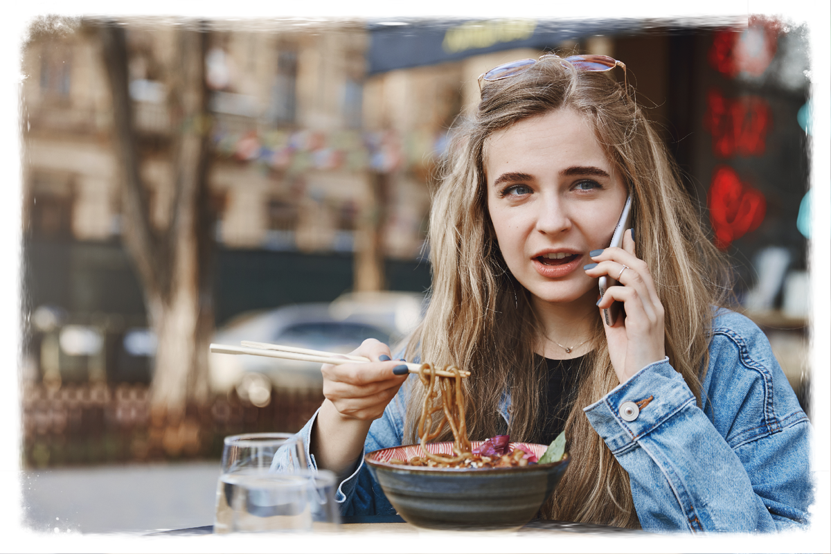 Дома ещё проще сбиться. Заказали доставку, достали контейнер, сели с телефоном. Пока горячее — надо съесть сразу. Через десять минут смотрите на пустую коробку и понимаете: снова не заметили, сколько съели. Хотя планировали остановиться на разумном.