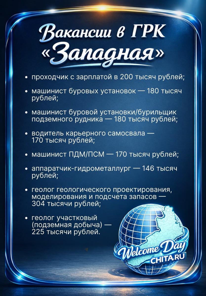 Welcome Day @chita.ru с крупнейшими работодателями Забайкалья пройдет 14 марта в 12:00 в «Мегаполисе» на Богомягкова, 23а. Соискатели смогут лично пообщаться с представителями ГРК «Западная» группы ОКТО и претендовать на одну из семи вакансий с зарплатой от 180 до 304 тысяч рублей.⬆️ Компания почти 50 лет занимается геологоразведкой и добычей золота. Ее активы расположены в Якутии, Бурятии и Забайкальском крае. На встрече можно задать работодателям вопросы, рассказать о своем опыте и получить предложение о работе. Организаторы ждут специалистов с опытом, выпускников и тех, кто хочет сменить профессию. Партнерами Welcome Day в этом году также будут «Нордголд» и Быстринский ГОК. ➡️ Для посещения обязательно зарегистрируйтесь. Осталось меньше 100 мест.