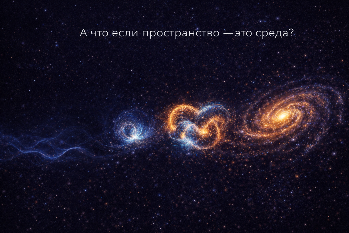 Мы начали этот цикл с простого вопроса. А что если пустота – это не отсутствие чего-то, а особый режим среды? Этот вопрос звучит почти философски. Но мы попытались рассматривать его не как философию, а как программу проверок. За несколько выпусков мы посмотрели на эту гипотезу с разных сторон. Сначала – на космических масштабах. Галактические кривые вращения показали, что слабое поле может вести себя так, будто система обладает внутренним масштабом. Затем – в лаборатории. Эффект Казимира показал, что границы могут менять состояние вакуума. Дальше – в квантовом режиме. Мы увидели, что волновая функция может быть описана как комбинация плотности и фазы среды. После этого – в когерентных системах. Криогенные конденсаты показали, что горизонт и даже аналог излучения Хокинга могут возникать в обычной физической среде. И наконец – в экстремальной астрофизике. Сигналы ring-down после слияния компактных объектов напоминают затухающий резонанс структуры. Каждый из этих случаев сам по себе не до