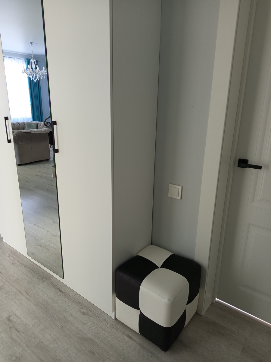 Потом на глаза мне попался пуфик. Он стоял в углу возле дивана, его там и не видно было. На днях я его переселила на ПМЖ в коридор. Он идеально вписался, как будто для него место было оставлено. Только был уж очень чумазый, отмыла его, стал как новый.