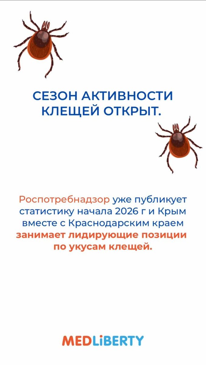 Роспотребнадзор уже публикует статистику начала 2026 г и Крым вместе с Краснодарским краем занимает лидирующие позиции по укусам клещей.