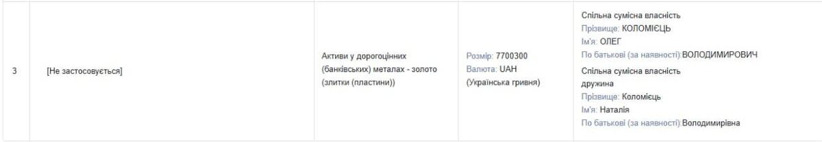Сотрудник первого отдела Бучанского ТЦК в Киевской области Олег Коломиец задекларировал золотые слитки общей стоимостью 7 700 300 грн (эквивалентно 1 кг 73,5 г золота). Также в декларации указаны ювелирные изделия на 778,8 тыс. грн (17,7 тыс. долларов), 35 тыс. долларов и 8,5 тыс. евро наличными. При этом официальная годовая зарплата Коломийца составила 366 тыс. грн (7 645 долларов). 📱 Телеграм-канал Херсонский Вестник 🌐 Группа VK Вконтакте