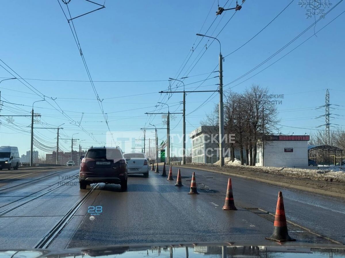 В Туле на Пролетарском мосту перекрыли полосу в сторону центра для ремонта асфальта