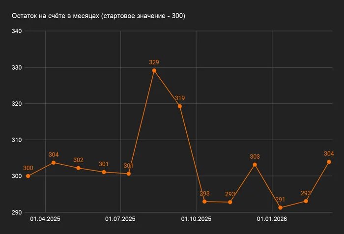 - На старте было 91 500 рублей (305₽ * 300).