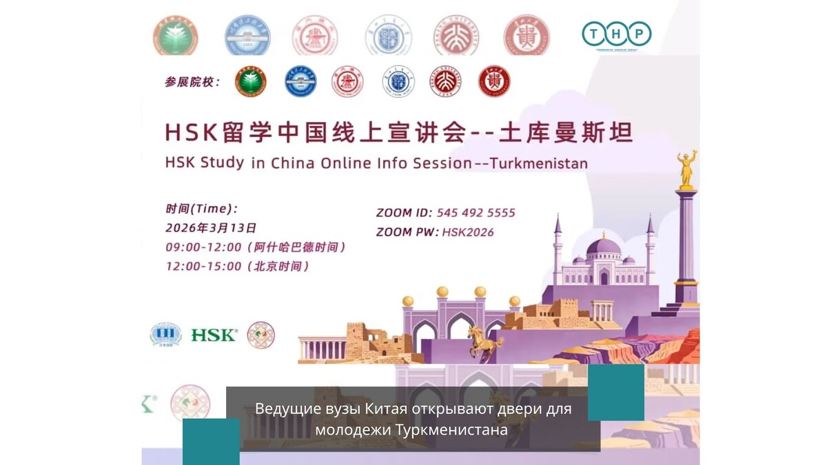 Для студентов из Туркменистана 13 марта впервые пройдет масштабная онлайн-выставка «Обучение в Китае». Образовательный марафон, организованный при поддержке Посольства КНР, состоится на платформе ZOOM с 9:00 до 12:00 по местному времени. Проект HSK, охвативший с 2016 года уже 47 стран, теперь предоставляет уникальный шанс туркменским абитуриентам напрямую пообщаться с представителями элиты азиатского образования. В мероприятии примут участие шесть флагманов китайской науки: Пекинский университет, Шанхайский транспортный университет, Пекинский технологический институт, а также ведущие вузы Харбина, Ланьчжоу и Гуйчжоу. В рамках 30-минутных презентаций, которые пройдут исключительно на русском языке, эксперты подробно осветят вопросы получения стипендий, выбора востребованных специальностей и условий проживания в кампусах. По завершении выступлений участники смогут получить консультации и задать вопросы в прямом эфире. Вход на цифровую площадку свободный, а количество участников не ограни
