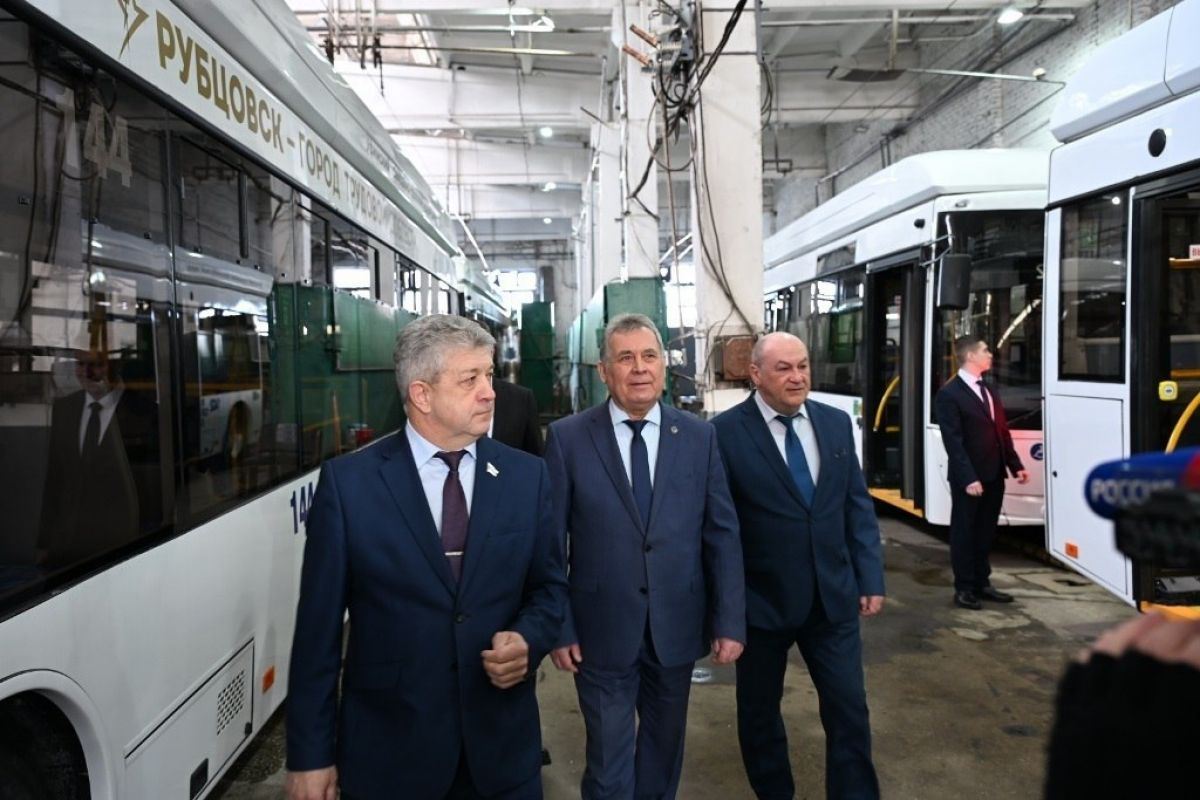 Сегодня в Рубцовске состоялась передача муниципальному предприятию новых троллейбусов, поступивших в город в рамках государственной программы «Развитие транспортной системы региона». Пять троллейбусов модели «Горожанин», стоимостью более 117 млн рублей, оснащены современными системами комфорта и безопасности, включая низкий пол, USB-порты и кондиционеры.