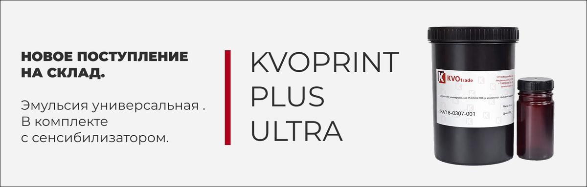 Новое поступление на склад: универсальная эмульсия KVOPrint PLUS ULTRA для печати пластизолевыми и водными красками, а так же для красок на