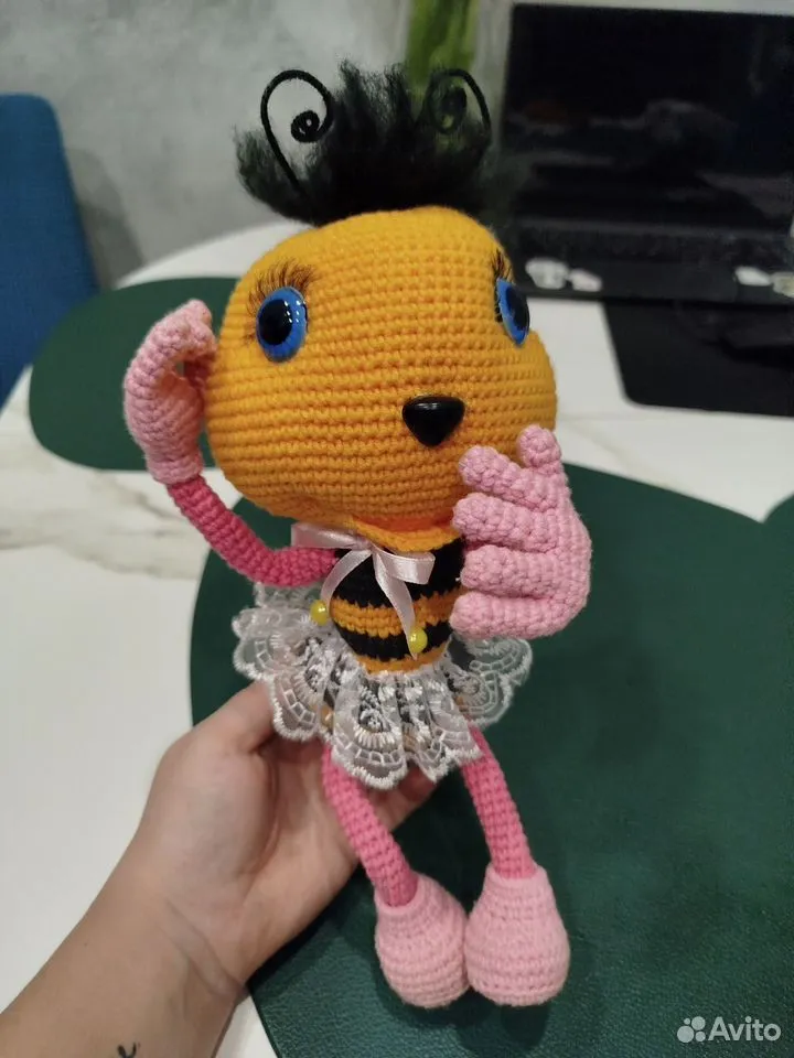 Наверное многие начинают заниматься рукоделием, будучи в декрете. Сегодня хочу рассказать вам о маленькой вязаной игрушке, сделанной вручную, с любовью и заботой. Эта игрушка — пчёлка, такая знакомая и родная, словно вернулась к нам из тех времён, когда мы сами были детьми и играли в простенькие, но такие душевные игры. Круглая голова, яркая, жёлтая, как летний цветок. Глаза у пчёлки большие, голубые, с длинными ресничками, словно у доброй девочки из старых советских книжек. Взгляд открытый и такой доверчивый. Маленький аккуратный носик и усики, которыми пчёлы чувствуют аромат цветов. Тельце у неё полосатое, как положено настоящей пчёлке: золотисто-жёлтый чередуется с насыщенным чёрным, словно сама природа подсказала, как сделать игрушку красивой и узнаваемой. Талия украшена ажурной юбочкой, лёгкой и прозрачной, как крылышки у настоящих пчёл. Ручки, пальцы и ножки нежно-розовые, мягкие и подвижные, внутри вставлена проволочная основа. На шее у пчёлки шарфик из атласной ленты, завязанны