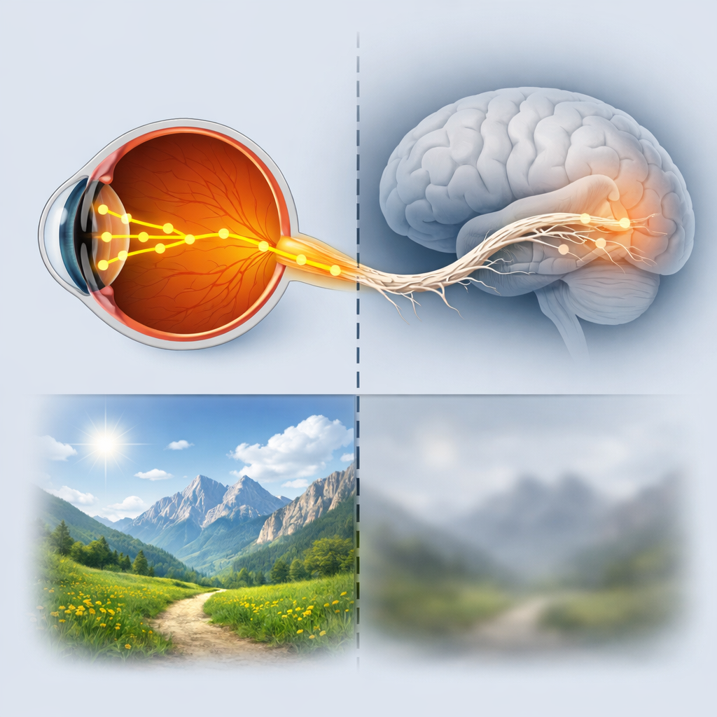 Атрофия зрительного нерва – это состояние, при котором нервные волокна постепенно разрушаются и перестают передавать сигнал от глаза к мозгу. Проще говоря, глаз может воспринимать изображение, но информация не доходит до мозга в полном объеме. В результате зрение снижается, и этот процесс нередко оказывается необратимым. Зрительный нерв может повреждаться по разным причинам. Среди основных: - глаукома - нарушения кровообращения - воспалительные заболевания - опухоли - травмы - последствия тяжелых инфекций Иногда атрофия развивается постепенно и почти незаметно для человека. Именно это делает ее особенно коварной. Наиболее частые проявления: - снижение остроты зрения - сужение полей зрения - ощущение «туннельного» видения - ухудшение цветоощущения Важно понимать: очки в такой ситуации не помогают, потому что проблема не в роговице или хрусталике, а в нарушении передачи сигнала к мозгу. К сожалению, погибшие волокна зрительного нерва не восстанавливаются. Поэтому главная задача не «верну