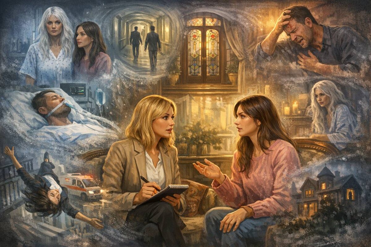 В доме стало тихо. Не просто тихо — слишком тихо. Такая тишина бывает иногда ночью в старых домах, когда даже собственное дыхание кажется слишком громким. Часы на стене перестали тикать — или, может быть, Елена просто перестала их слышать. Ветер за окном тоже стих, и даже ветви старого клёна, до этого тихо скребшие по стеклу, вдруг замерли. Елена и Олеся сидели неподвижно. Будто дом прислушивался к ним. И вдруг… раздался звук. Тук. Тук. Тук. Он был негромкий, но в этой густой тишине прозвучал так отчётливо, будто кто-то стоял прямо у двери. Олеся вздрогнула всем телом. Её пальцы резко сжались на краю стола. — Вы… слышали? — прошептала она. Голос её прозвучал хрипло, словно она боялась говорить громче. Елена медленно повернула голову. Её взгляд остановился на витражной двери. Цветные стекла в темноте выглядели почти черными. — Да, — тихо ответила она. Несколько секунд они просто слушали. И снова — Тук. Тук. Тук. Стук был с улицы. Елена медленно поднялась. Пол под её ногами тихо скрипнул