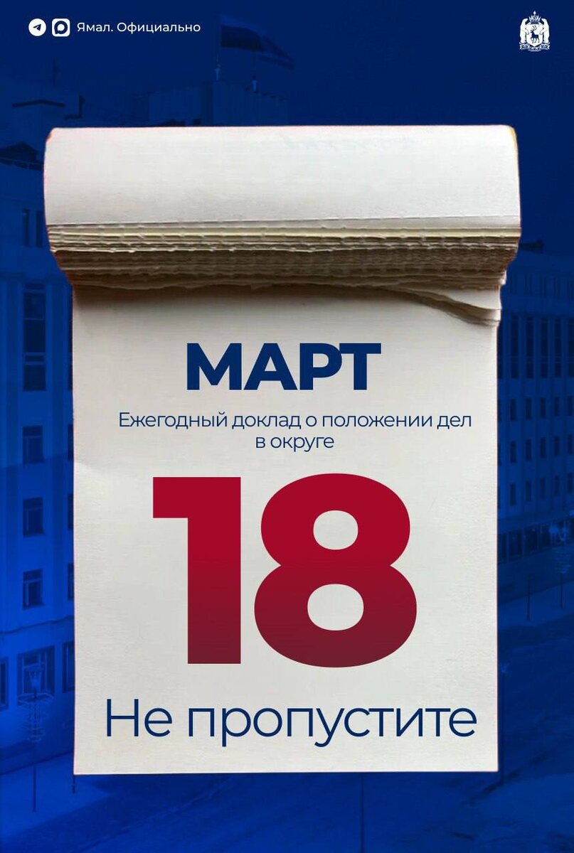 Π ΠΎΠ²Π½ΠΎ ΡΠ΅ΡΠ΅Π· Π½Π΅Π΄Π΅Π»Ρ, 18 ΠΌΠ°ΡΡΠ°, Π² 12:00 Π³ΡΠ±Π΅ΡΠ½Π°ΡΠΎΡ Π―ΠΌΠ°Π»Π° ΠΏΠΎΠ΄Π΅Π»ΠΈΡΡΡ ΠΏΠ»Π°Π½Π°ΠΌΠΈ Π½Π° Π³ΠΎΠ΄ ΠΈ ΡΠ°ΡΡΠΊΠ°ΠΆΠ΅Ρ ΠΎ ΡΠΎΠΌ, ΡΡΠΎ ΡΠ΄Π΅Π»Π°Π½ΠΎ. Π Π·Π°Π»Π΅ Π±ΡΠ΄ΡΡ ΠΏΡΠΈΡΡΡΡΡΠ²ΠΎΠ²Π°ΡΡ Π΄Π΅ΠΏΡΡΠ°ΡΡ ΠΠ°ΠΊΡΠΎΠ±ΡΠ°Π½ΠΈΡ ΠΈ ΠΏΡΠ΅Π΄ΡΡΠ°Π²ΠΈΡΠ΅Π»ΠΈ ΠΎΠ±ΡΠ΅ΡΡΠ²Π΅Π½Π½ΠΎΡΡΠΈ. ΠΠΎΡΠΌΠΎΡΡΠ΅ΡΡ Π²ΡΡΡΡΠΏΠ»Π΅Π½ΠΈΠ΅ ΠΌΠΎΠΆΠ½ΠΎ Π±ΡΠ΄Π΅Ρ Π² ΠΏΡΡΠΌΠΎΠΌ ΡΡΠΈΡΠ΅ Π½Π° ΡΠ΅Π»Π΅ΠΊΠ°Π½Π°Π»Π΅ Β«Π―ΠΌΠ°Π»Β» ΠΈ Π² ΡΠΎΡΠΈΠ°Π»ΡΠ½ΡΡ