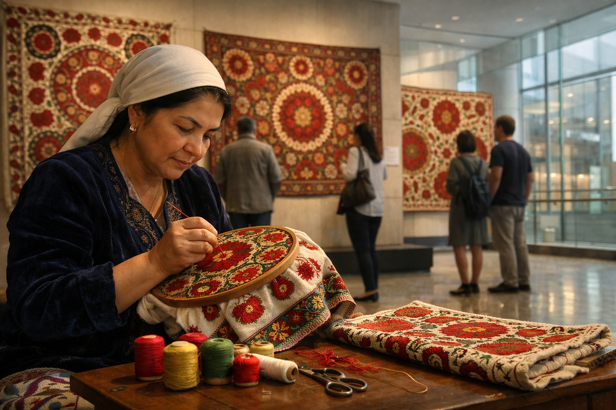 Само появление подобной выставки за пределами Узбекистана является частью более широкого культурного процесса, который можно наблюдать в последние годы в Центральной Азии. По данным ЮНЕСКО, только за последние десять лет количество международных проектов, связанных с традиционными ремеслами региона, увеличилось примерно в три раза. Если в начале 2010-х годов ежегодно проводилось около 15–20 выставок, фестивалей и симпозиумов, посвященных ремеслам Центральной Азии, то к середине 2020-х их число приблизилось к 60. Вышивка, наряду с ковроткачеством и керамикой, стала одним из наиболее востребованных направлений культурной дипломатии.