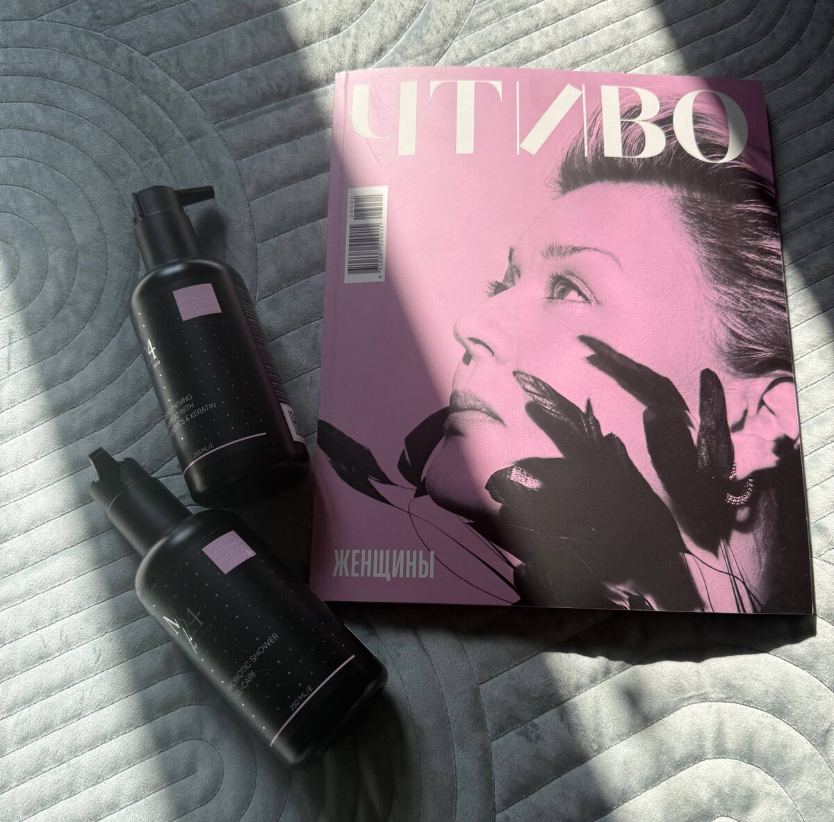 Решила в перерыве изучить свежий номер «Чтива» (все-таки приятно, когда Сергей Минаев восхищается женщинами, не все же про дух лес). А заодно разобрать и снять прилетевшие бьюти-новинки. Пожалуй, пора вводить режим ч/р — черно-розовый дресс-код. Как вам сочетание?