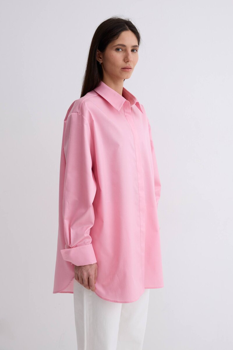 ! Рубашка Кира из хлопка 100% Объемная акцентная рубашка. Держит форму, не просвечивает. Закрытая планка не будет привлекать внимание к пуговицам и позволит добавить в образ любые аксессуары. Широкие манжеты, которые можно оставить такими или сделать классический вариант подвернув их. Смотреть на сайте
