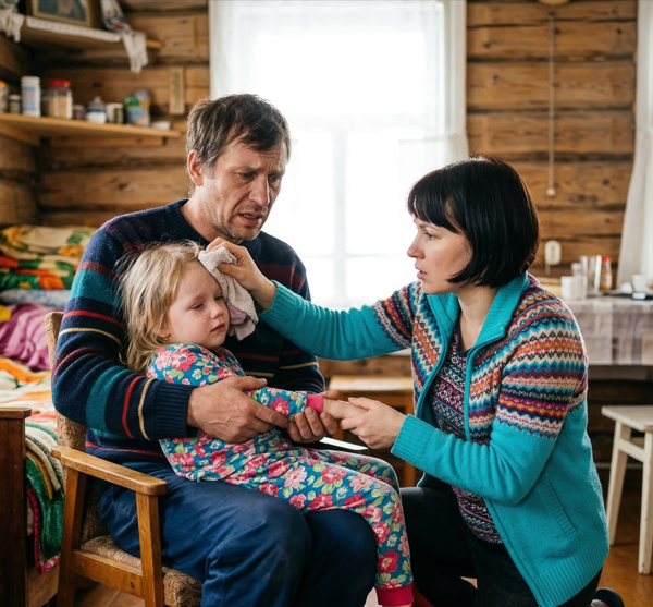— Слушай, только тихо, — грубо бросил он, помогая ей стянуть ледяное пальто. — У меня дочь вся горит. Жар сильный, сбить не могу.