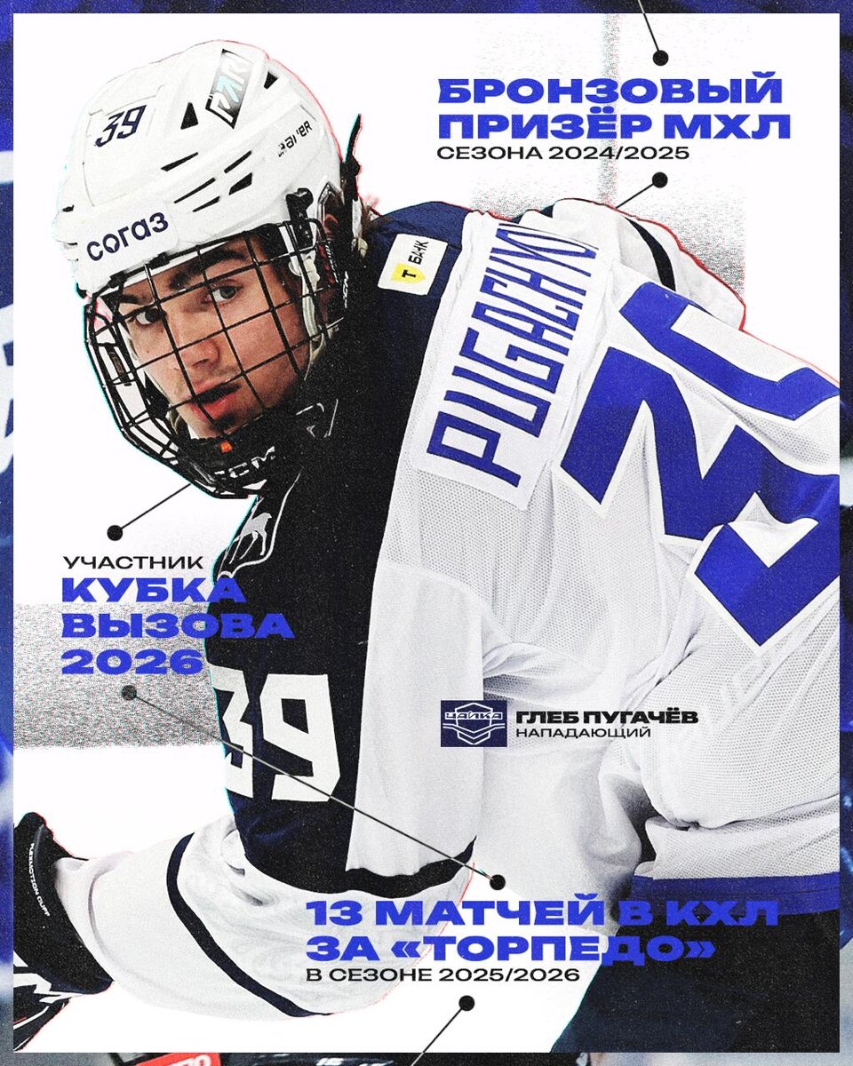 » В сезоне 2024/2025 он дебютировал в МХЛ за «Чайку», а к плей-офф стал одним из лидеров команды, набрав 11 очков в 14 матчах. Новый сезон 2025/2026 стал для Пугачёва шагом вперёд: он получил приглашение на Кубок Вызова, а в январе дебютировал в КХЛ. Уже в первых матчах за «Торпедо» габаритный нападающий (191 см, 96 кг) отметился победными шайбами и привычной жёсткой игрой, благодаря которой его сравнивают с Александром Радуловым. 🏒 @mhlrus