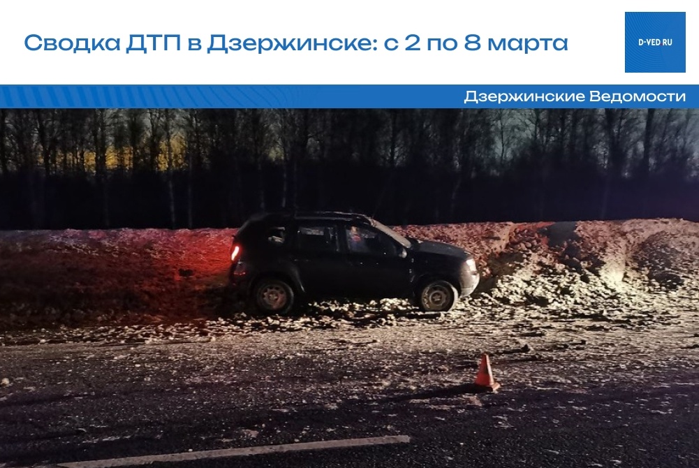 За период со 2 по 8 марта 2026 года на территории Дзержинска произошло 24 ДТП, в которых 3 человека получили телесные повреждения. 3 марта в 12:00 на улице Гайдара д. 61 «В» водитель Мерседеса при проезде регулируемого перекрёстка на разрешающий сигнал светофора осуществлял поворот направо со среднего ряда и не уступил дорогу троллейбусу, который двигался в правом ряду прямо. В результате ДТП пассажир троллейбуса получил телесные повреждения. В этот же день в 19:15 на автодороге «Москва-Уфа» водитель Рено Дастер не учел дорожные и метеорологические условия, в результате чего не справился с управлением, совершил съезд с дороги с последующим наездом на снежный вал и получил телесные повреждения. 5 марта в 17:03 на улице Чапаева д.3 водитель Хендай Солярис при движение задним ходом осуществил наезд на пешехода, который получил телесные повреждения. Уважаемые водители! Помните, что автомобиль является транспортным средством повышенной опасности, поэтому необходимо быть предельно внимательн