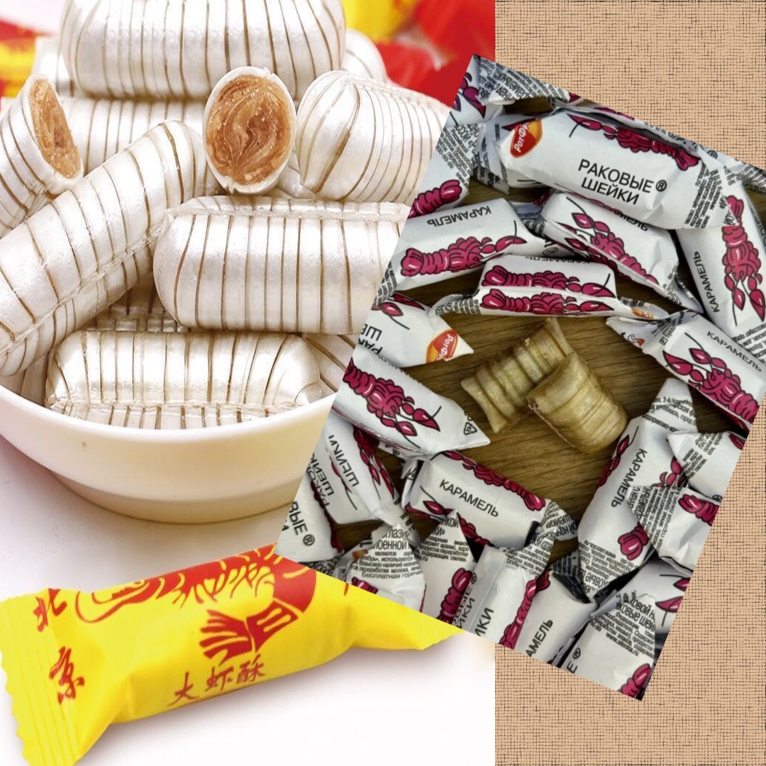 Вообще сейчас это название может сбить с толку, правда? Оно ни сбивает. В переводе на английский вообще всплывает лобстер. И многие иностранцы не покупают на пробу потому, что представить себе вкус лобстера в конфетах просто не могут, впрочем как и креветок. В Китае да, там представить вкус всего и во всем могут легко.