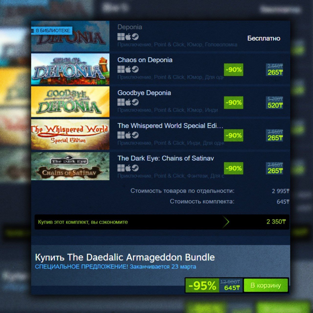 Для этого покупаем Daedalic - Gigantic Bundle за 110 рублей и The Daedalic Armageddon Bundle за 100 рублей Вдобавок, в играх есть коллекционные карточки, которые могут отбить больше половины стоимости бандлов или просто прокачать вам уровень 🟣Типо Крутой Геймер🟣