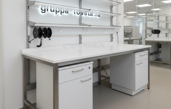 Опции и надстройки (диапазоны): мост с розетками/USB/LAN — 45 000–110 000; газовые/водяные посты — 18 000–35 000 за точку; раковина лабораторная (эпоксидка/PP/нерж.) — 25 000–60 000; подстольные тумбы — 12 000–25 000 за шт.; полки на мост — 8 000–20 000; комплект колес с тормозами — 8 000–15 000; каплеуловитель/бортик — 8 000–12 000. И да, на цену влияет цвет и толщина порошкового слоя — не шутка.