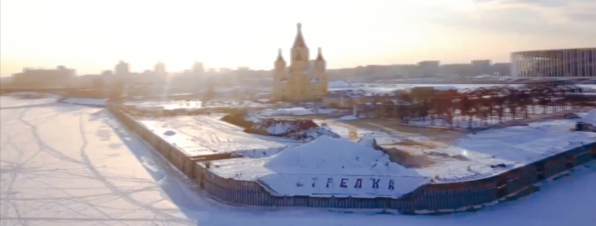 Волга и Ока сливаются внизу в одну бескрайнюю гладь. Стрелка — место силы, где две реки встречаются, чтобы дальше течь вместе. Собор Александра Невского возвышается на фоне неба, и кажется, что он парит в воздухе.