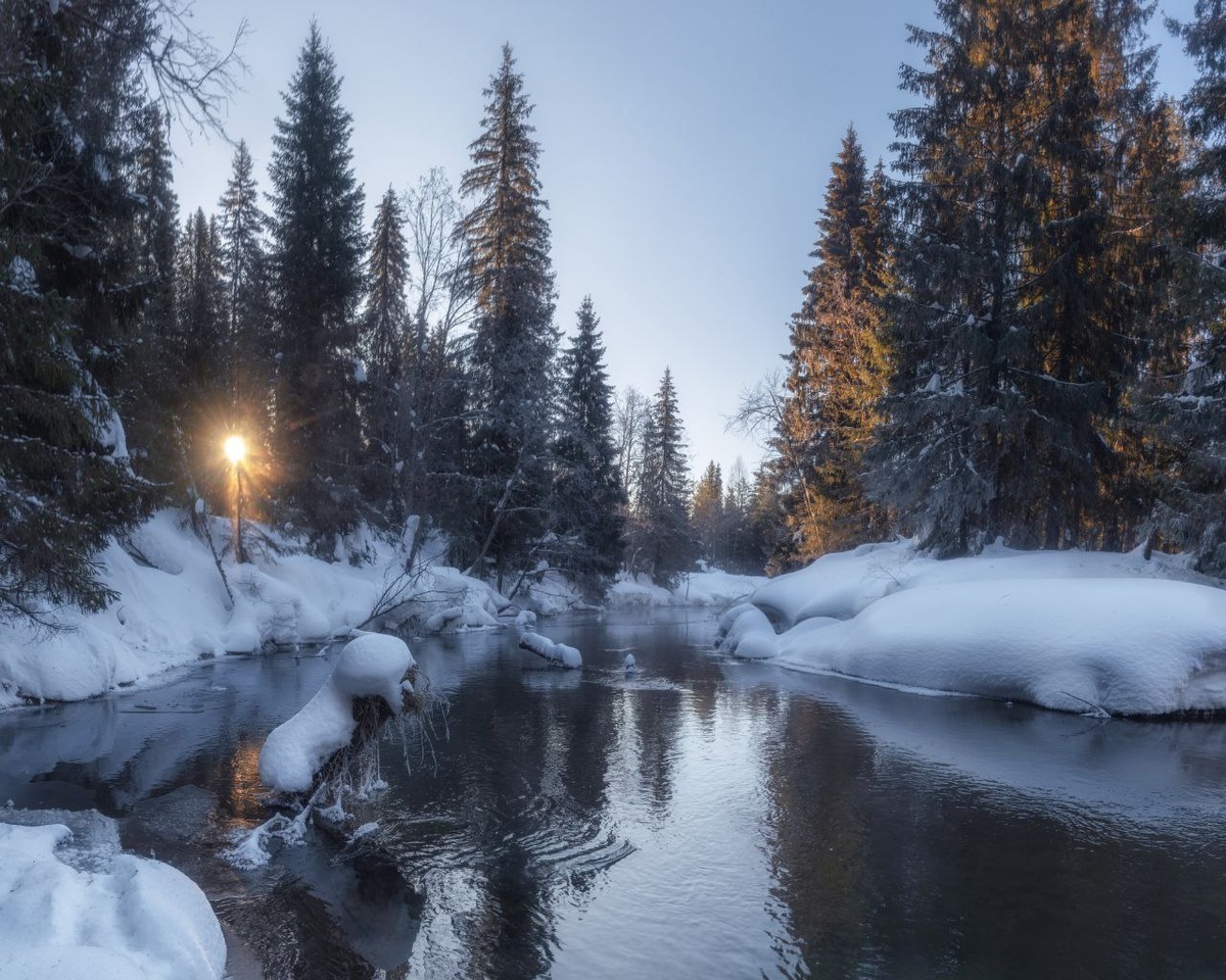 На берегах всё еще лежат огромные сугробы, похожие на белых китов, а лесная речка уже проснулась и поет свою весеннюю песню. Этот ослепительный блик между деревьев — как символ надежды и скорого тепла. Самое время отправиться в лес за порцией вдохновения и чистого воздуха. А какой отдых для вас лучший: активный или вот такое созерцание тишины?