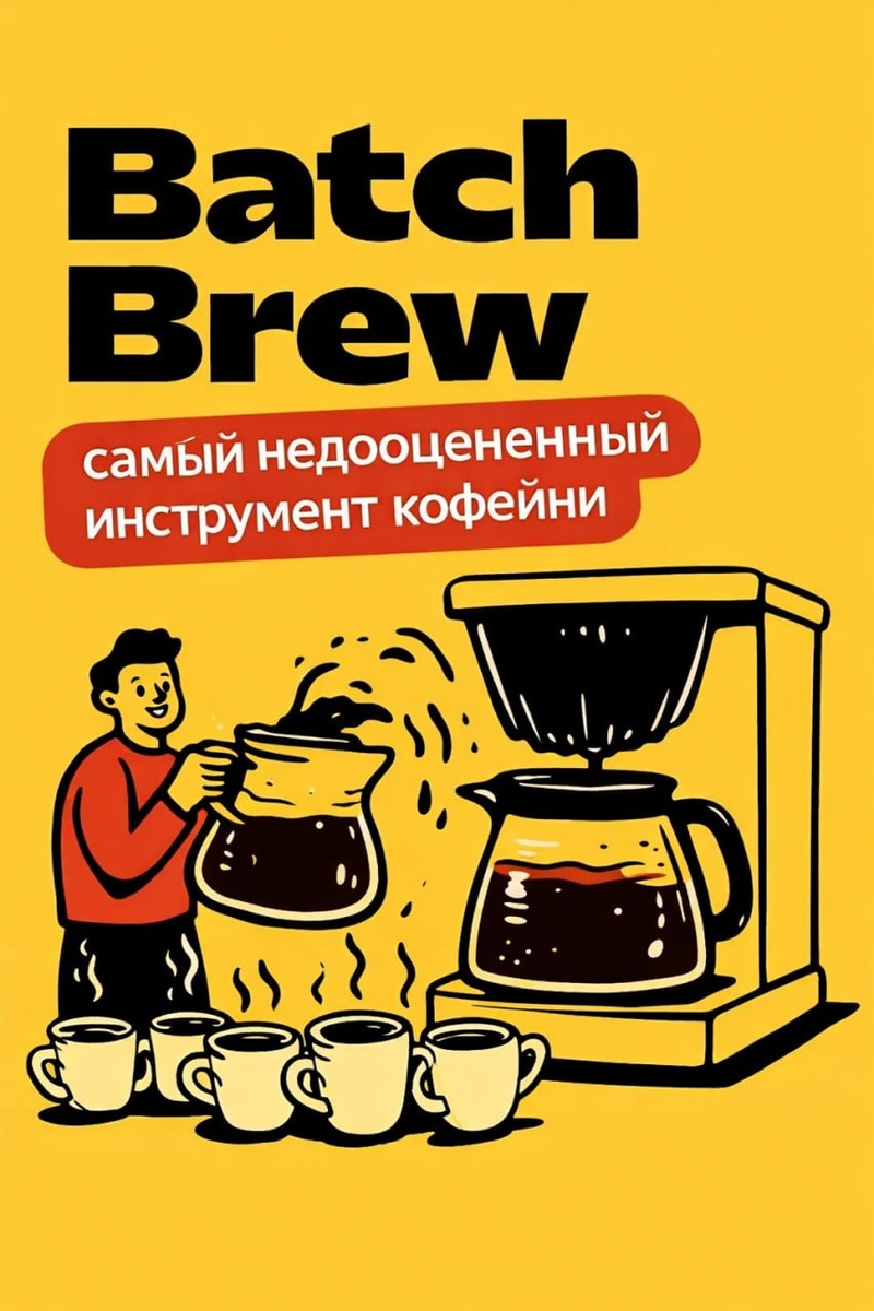 У фильтр-кофе до сих пор есть один устойчивый миф. «Фильтр долго готовить». Многие владельцы кофеен уверены, что фильтр — это медленно, сложно и неудобно для потока гостей. Поэтому в меню остаются только эспрессо и напитки на его основе. Но реальность кофейной индустрии сегодня совсем другая. Batch brew — это один из самых быстрых способов приготовления кофе в кофейне. И именно поэтому во многих современных кофейнях фильтр снова активно набирает популярность. Как работает batch brew Механика максимально простая. Нужно всего три вещи: 1️⃣ кофемолка под фильтр 2️⃣ фильтр-кофеварка 3️⃣ хорошее зерно Бариста засыпает кофе, заливает воду — и кофеварка готовит напиток автоматически. Обычно за один цикл готовится около 2 литров кофе. Это занимает примерно 6–7 минут. В результате бариста сразу получает 10–12 чашек готового кофе, которые можно быстро разливать гостям. Фактически кофе готовится заранее, а выдача происходит практически мгновенно. Почему кофейни всё чаще используют batc