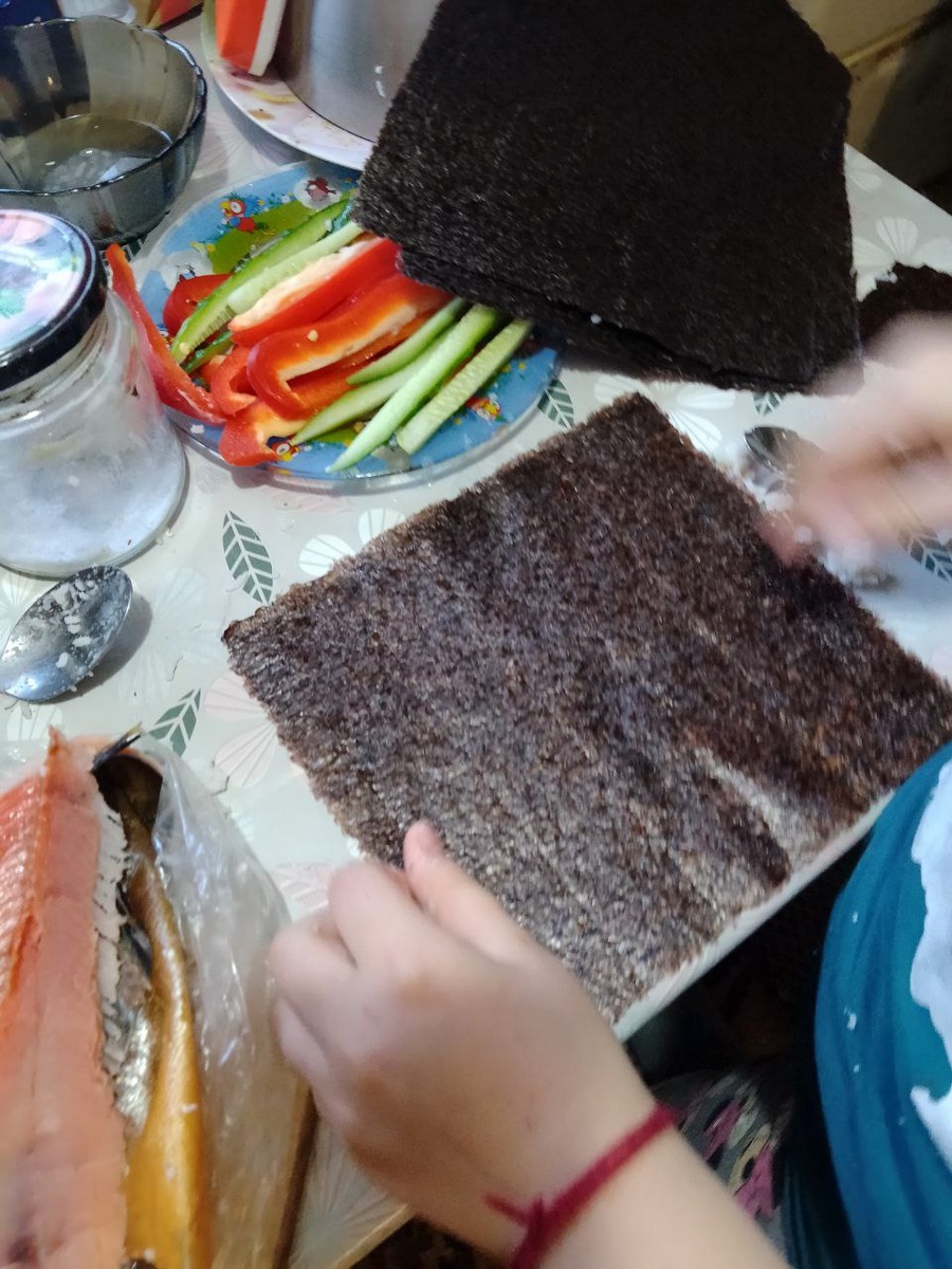 Давно не делали роллы. У детей азарт и неподдельный интерес в приготовлении. И конечно же потом поедание с аппетитом вкусноты😋