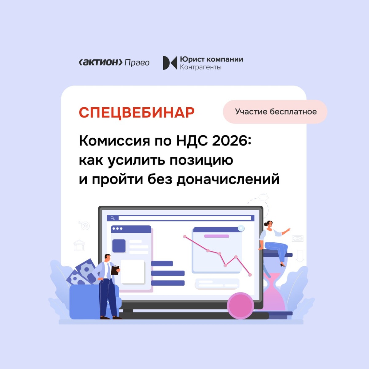 Коллеги из сервиса Юрист компании Контрагенты приглашают на бесплатный спецвебинар «Комиссия по НДС 2026: как усилить позицию и пройти без