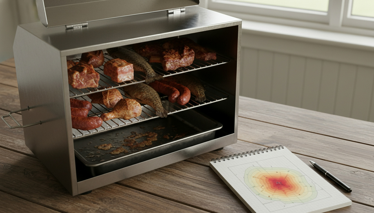 Самый честный тест на следующий запуск: положи одинаковые куски на верх/низ (или у входа/у выхода) и сравни результат. Один запуск — и ты уже понимаешь свою коптильню.