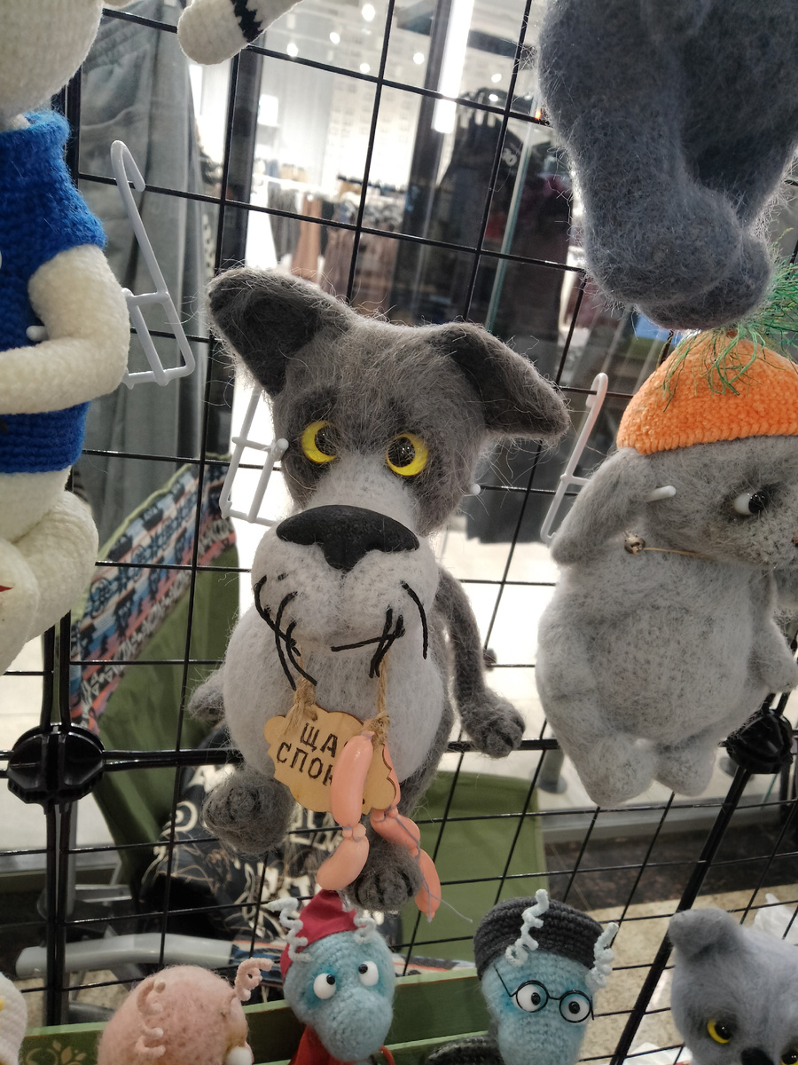Мастерицы Тамбова к весеннему празднику приготовили такое.....,что можно порадовать не только себя любимых, но и приобрести в подарок к самым любым праздникам и юбилеям. В одном из торговых центрах города довольно часто проходят ярмарки мастеров. На одну из таких попала и я (чисто случайно). Просто мимо пройти не смогла. Фотографий сделано много ,а начала я с волчонка уж больно хорош. Фотографий получилось много, есть не только украшения, игрушки, но и съедобные подарки, такие как зефир и пряники. Кто то выставлял цены, кто то нет. У всех спрашивала разрешения для фото. Восхищаюсь. Вот это фантазия. Браво!