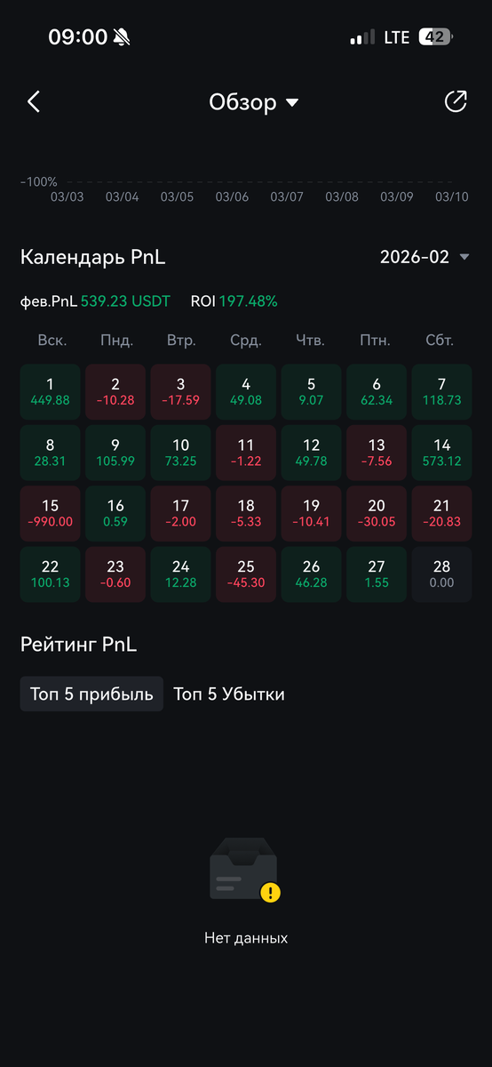 Перед вами скрин моего февральского PnL. Месяц, когда бот только встал на ноги, а я — только начинал ему доверять.