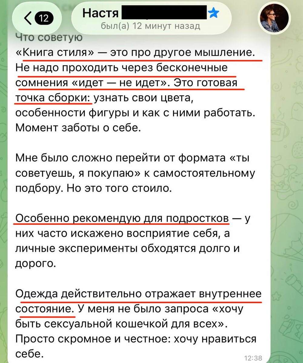 И даже не понимают этого. Уверена, вы тоже стояли в примерочной, а на крючке уже висит половина магазина. На полу валяются джинсы. На плечиках платья. На стуле ещё три вещи, которые «ну вдруг подойдут». Вы надеваете одну. Снимаете. Берёте следующую. Смотрите в зеркало и пытаетесь понять: что опять не так?! Одно туго. Другое странно сидит. Третье вроде ничего… но какое-то не ваше. И в какой-то момент появляется мысль: наверное, просто со мной что-то не так. Фигура сложная. Вкуса нет. Или нормальные вещи есть только в дорогих магазинах. ⸻ Хотя на самом деле всё гораздо проще. Мы просто выбираем одежду как выбирают десерт в кафе. По картинке. По настроению. По принципу: «ну красиво же висит». И поэтому каждая новая вещь становится маленькой лотереей. ⸻ А теперь представьте другую ситуацию. Вы заходите в магазин и половину вещей даже не несёте в примерочную. Потому что сразу видно: это не моя длина этот цвет сделает старше эта кофта утяжелит фигуру А те вещи, которые вы всё-т