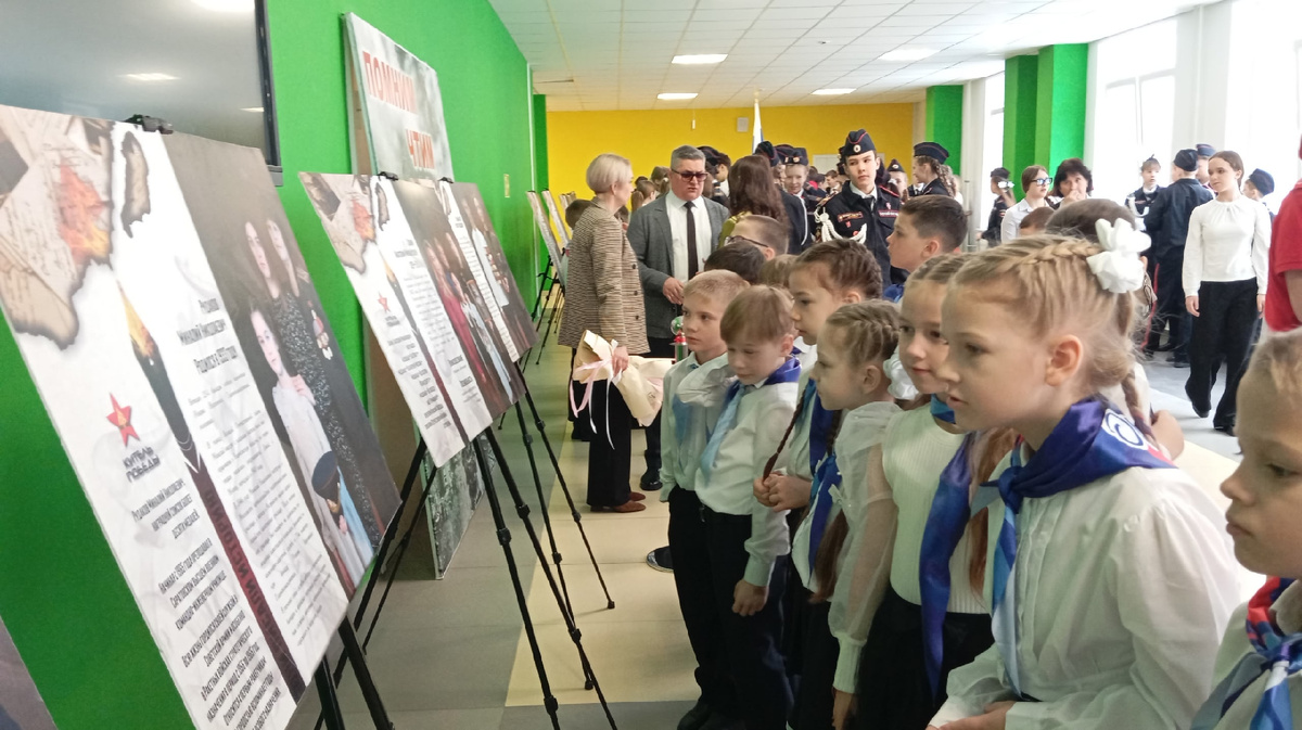 С необычного мероприятия началась прошлая учебная неделя для учащихся камышинской школы №1. Во время торжественной линейки и «Разговора о важном» в образовательном учреждении состоялось открытие фотовыставки «Китель Победы». Это всероссийский проект, в котором собраны уникальные портреты ветеранов Великой Отечественной войны и членов их семей. К каждой фотографии прилагается трогательное письмо с личной историей участника войны и его семьи. Среди почётных гостей на торжественной линейке в школе №1 присутствовали представители Донецкого военного училища, заместитель председателя комитета по образованию Дмитрий Чернай, руководитель всероссийской фотовыставки Юлия Шалатонова. Юлия Геннадьевна – камышанка, окончила школу №8 и теперь является представителем масштабного федерального проекта. Она поблагодарили школу за тёплый приём и вместе с ученицами школы №8 провела небольшую экскурсию по выставке, подробно остановившись на нескольких героях. Среди них Евгений Ильич Федяев. На момент съём