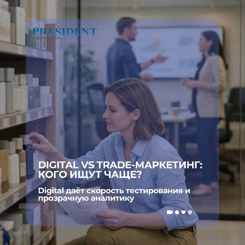 📊 Digital vs Trade-маркетинг. Кого компании ищут чаще? Маркетинг сегодня развивается сразу в двух направлениях: онлайн-каналы и офлайн-продвижение в точках продаж. Поэтому на рынке всё чаще возникает вопрос: какие специалисты востребованы сильнее? 💎 Digital-маркетинг Сюда относятся performance-каналы, контекстная реклама, таргетинг, аналитика, SMM и работа с онлайн-воронкой. Компании активно усиливают это направление, потому что digital позволяет быстро тестировать гипотезы и измерять результат. 💎 Trade-маркетинг Это работа с продажами в офлайн-каналах: магазины, дистрибуция, мерчандайзинг, акции в точках продаж, взаимодействие с сетями и партнёрами. Такие специалисты особенно востребованы в FMCG, ритейле и производственных компаниях. 💡Где спрос выше? В последние годы digital-маркетинг растёт быстрее, но trade-маркетинг остаётся ключевым там, где основная выручка формируется в офлайн-продажах. 📌Поэтому компании всё чаще ищут не просто маркетолога, а специалиста под конкретный