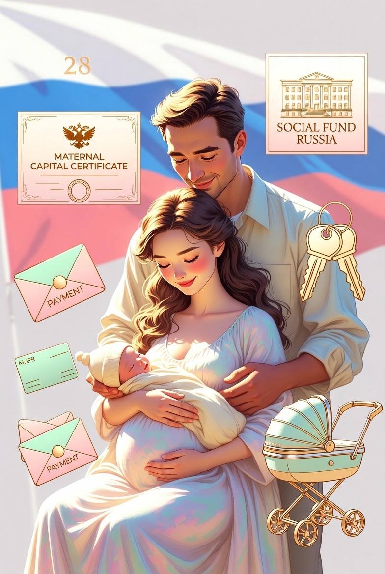 - Единовременная выплата при рождении: 28 773 руб. (на февраль 2026, с индексацией 5,6 %). Получаешь в СФР или у работодателя. Документы: свидетельство о рождении, паспорт. Если близнецы — выплата на каждого.