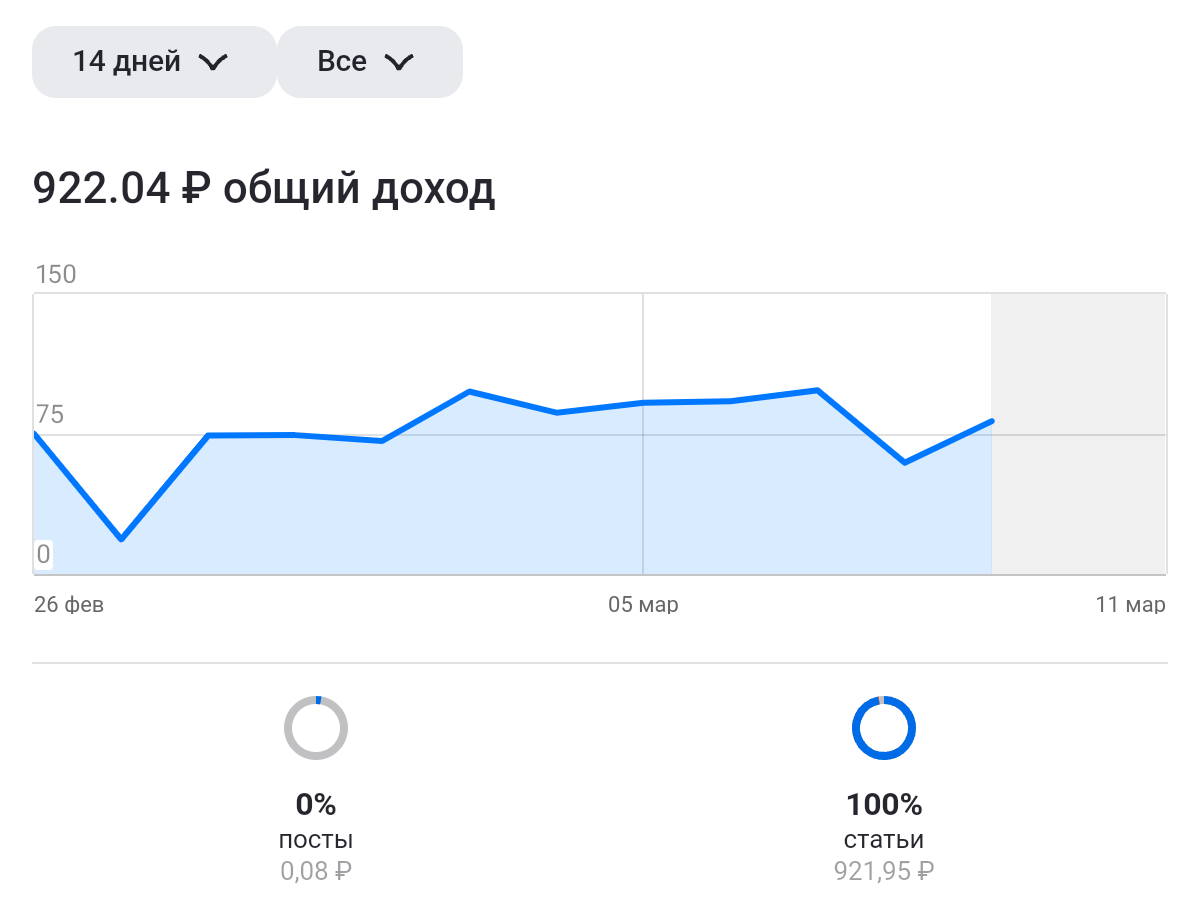 Всем привет. ♦️♦️♦️♦️♦️♦️ В конце каждой статьи пишу просьбу к читателям поставить лайк и написать комментарий. Уже Бог с ними, с комментариями, надо что-то придумывать, писать хорошее или плохое, это напряжение для мозга, а не все хотят его напрягать, но поставить лайк ведь можно? Это не займет много времени и не так напряженно. Если вы открыли статью и прочитали или просмотрели ее, не неужели трудно нажать на пальчик вверх? От этого «пальчика» зависит количество показов и, соответственно, оплаты. Дзен постоянно снижает количество показов. Я не знаю, как работает алгоритм Дзена, но к вечеру количество просмотров резко падает, куда они деваются, одному Дзену известно. Я не прошу многого, но поставить лайк, думаю, большого труда не стоит. Спасибо за понимание. ❗ За две недели вот такой доход. Много это или мало как думаете? ♦️♦️♦️♦️♦️♦️ В городе наступила настоящая весна. С утра светило солнце, и градусник за окном с восточной стороны показывал аж 16 градусов тепла, но это только на